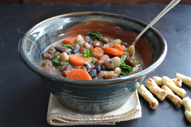 There are some who believe that eating beans on New Year’s Day can bring you good fortune for the year ahead. Beans are said to represent coins. I can’t promise you will win the lottery this year, but I do know that this soup is really good for you and it tastes really good!