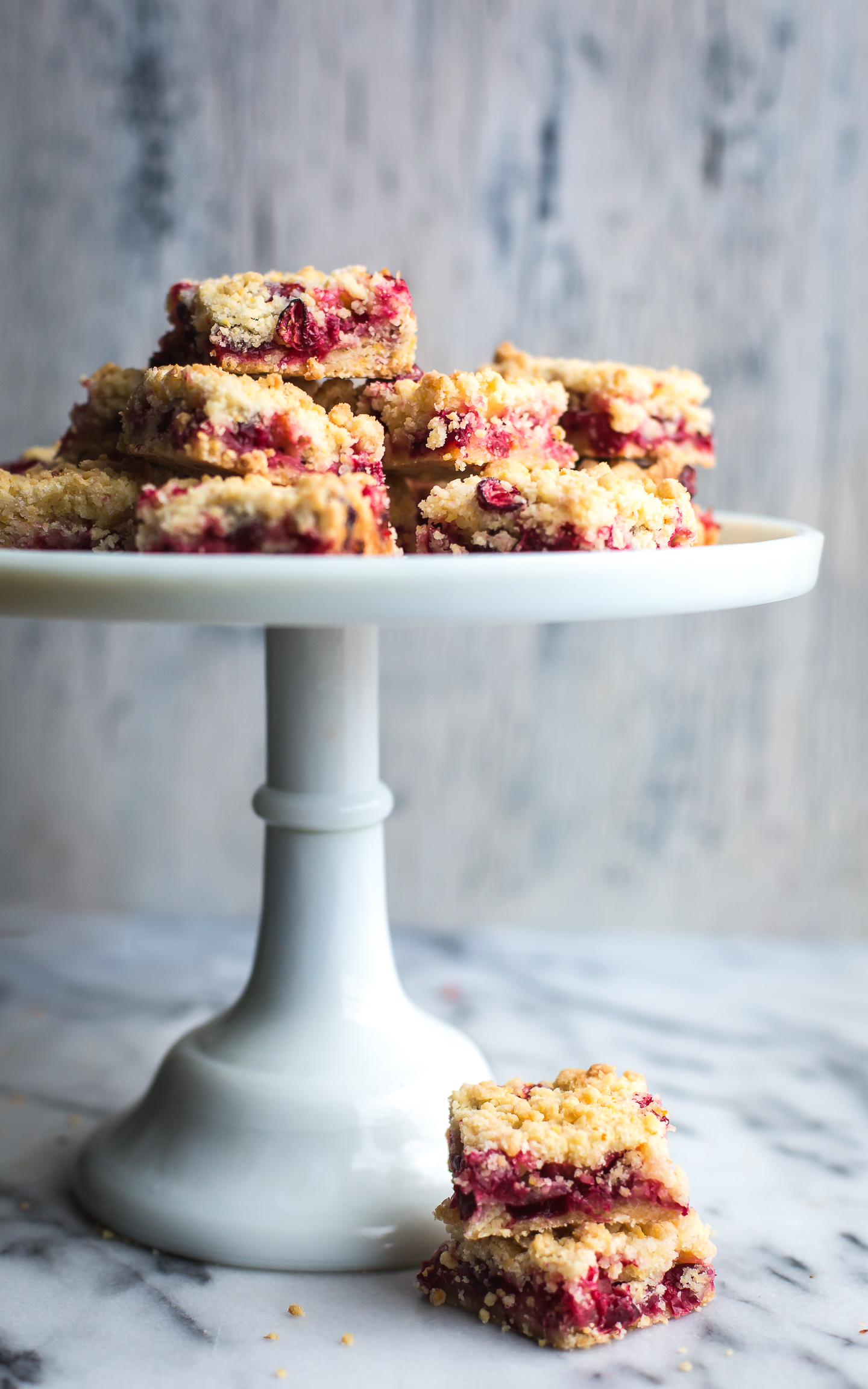 These Cranberry Bars are a simple, easy dessert that taste amazing! They've got a delicate, buttery, orange scented shortbread crust with a sweet, tangy cranberry filling. #tasteloveandnourish #cranberrybars #cookie #holiday #baking #recipe #easy #glutenfreeoptions