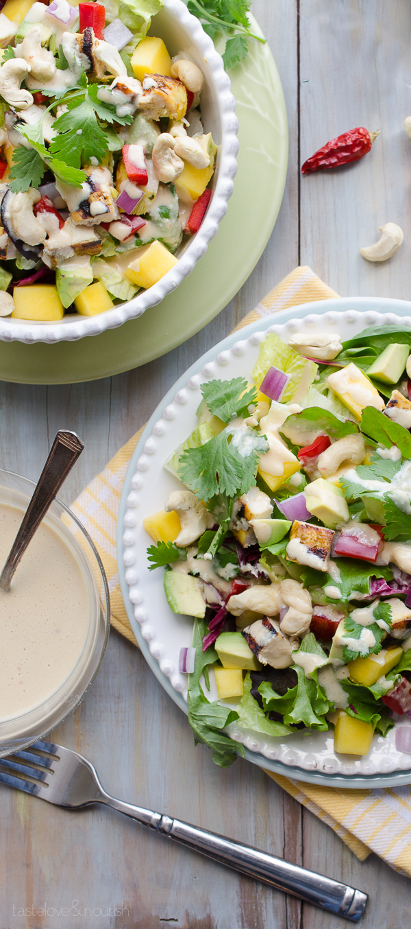 Thai Cashew Chicken and Mango Salad - this salad is full of so many great flavors and textures. | @tasteLUVnourish on TasteLoveAndNourish.com